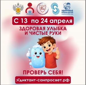 13.04.2026Федеральная служба по надзору в сфере защиты прав потребителей иблагополучия человека в рамках реализации коммуникационной стратегии«Санпросвет» проводит образовательно-просветительскую акцию «Диктантздоровья». Просим Вас, принять участие в федеральной образовательной акции.Разместить на своих сайтах ссылку, пройти тестирование на порталеРоспотребнадзора https://диктант-санпросвет. рф/Стартует первый этап Всероссийской акции «Диктант здоровья»:проверяем знания о гигиене полости рта и чистых рукахС 13 по 24 апреля 2026 года Роспотребнадзор запускает первыйтематический трек Всероссийской санитарно-просветительской акции «Диктантздоровья» - «Здоровая улыбка и чистые руки». Модератором проектавыступает ФБУН «Новосибирский НИИ гигиены» Роспотребнадзора.Проект реализуется в рамках коммуникационной стратегии «Санпросвет».Цель акции - сделать научно-обоснованные знания о здоровье доступными иполезными для каждого жителя страны, от школьников до людей старшегопоколения.О чем узнают участники?Первый этап посвящен двум важнейшим компонентам личной гигиены,которые являются основой профилактики множества заболеваний:Гигиена полости рта. Многие считают, что умеют чистить зубы, ностатистика кариеса говорит об обратном. Участники узнают:почему важно чистить зубы регулярно;что полезно и вредно для эмали,как связаны здоровье зубов и общее состояние организма.Чистота рук. Это первый и самый эффективный барьер на путиинфекционных заболеваний. В рамках диктанта будут разобраны вопросы:когда необходимо мыть руки;главные ошибки при мытье рук (достаточно ли 5 секунд?).Формат проведения«Диктант здоровья» пройдет в удобном онлайн формате на официальном портале акции диктант-санпросвет.рф. Каждый желающий сможет ответить навопросы и увидеть правильные ответы с подробными пояснениями экспертов, атакже получить электронный сертификат участника.Доступен очный формат проведения акции в коллективах. Необходимыематериалы для очных стартов размещены на портале диктант-санпросвет.рф.Для кого?Материалы адаптированы для разных возрастных групп:Школьникам - чтобы сформировать здоровые привычки с детства.Студентам- чтобы понять важность гигиены в самом активномвозрасте.Взрослым и родителям- чтобы освежить знания и передать детямправильные ориентиры.Педагогам - как готовый просветительский материал для уроков иклассных часов.Акция поддержана проектом «Сибирская школа - территорияздоровья» межрегиональной ассоциации «Сибирское соглашение» приучастии Национального союза «Здоровье наших детей».Справочно.В 2025 году «Диктант здоровья», приуроченный ко Дню основаниясанитарно-эпидемиологической службы Российской Федерации, приорганизационно-методической поддержке ФБУН «Новосибирский НИИ гигиены»Роспотребнадзора, прошел в 88 регионах России и собрал более 248 тыс.участников.В 2026 году проект реализуется в несколько модулей. Этап «Здороваяулыбка и чистые руки» станет первым в череде просветительских мероприятий, закоторым последуют треки, посвященные физической активности, здоровомупитанию и цифровой гигиене.Присоединяйтесь к «Диктантуосознанным вместе!Начальник территориального отделаУправления Роспотребнадзорапо Чеченской Республикев Ачхой-Мартановском районездоровья»