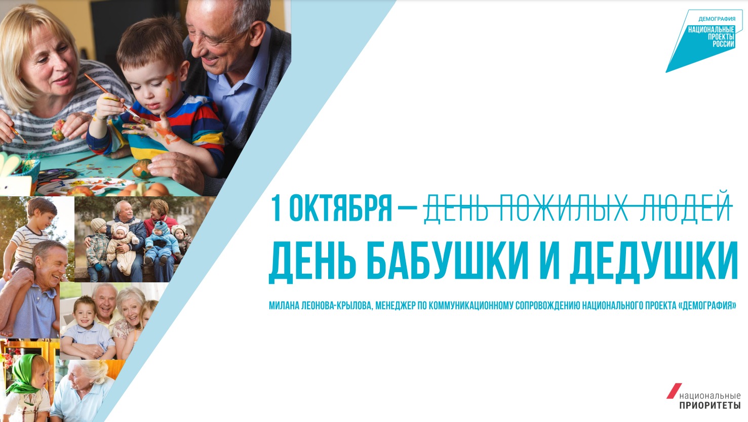 1 октября в Международный день пожилого человека в России впервые проведут акцию «День бабушки и дедушки», при поддержке национального проекта «Демография».